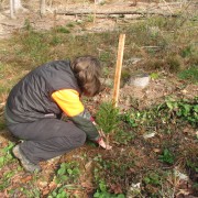 (Photo : Mme Marija en train de planter un jeune épicéa)